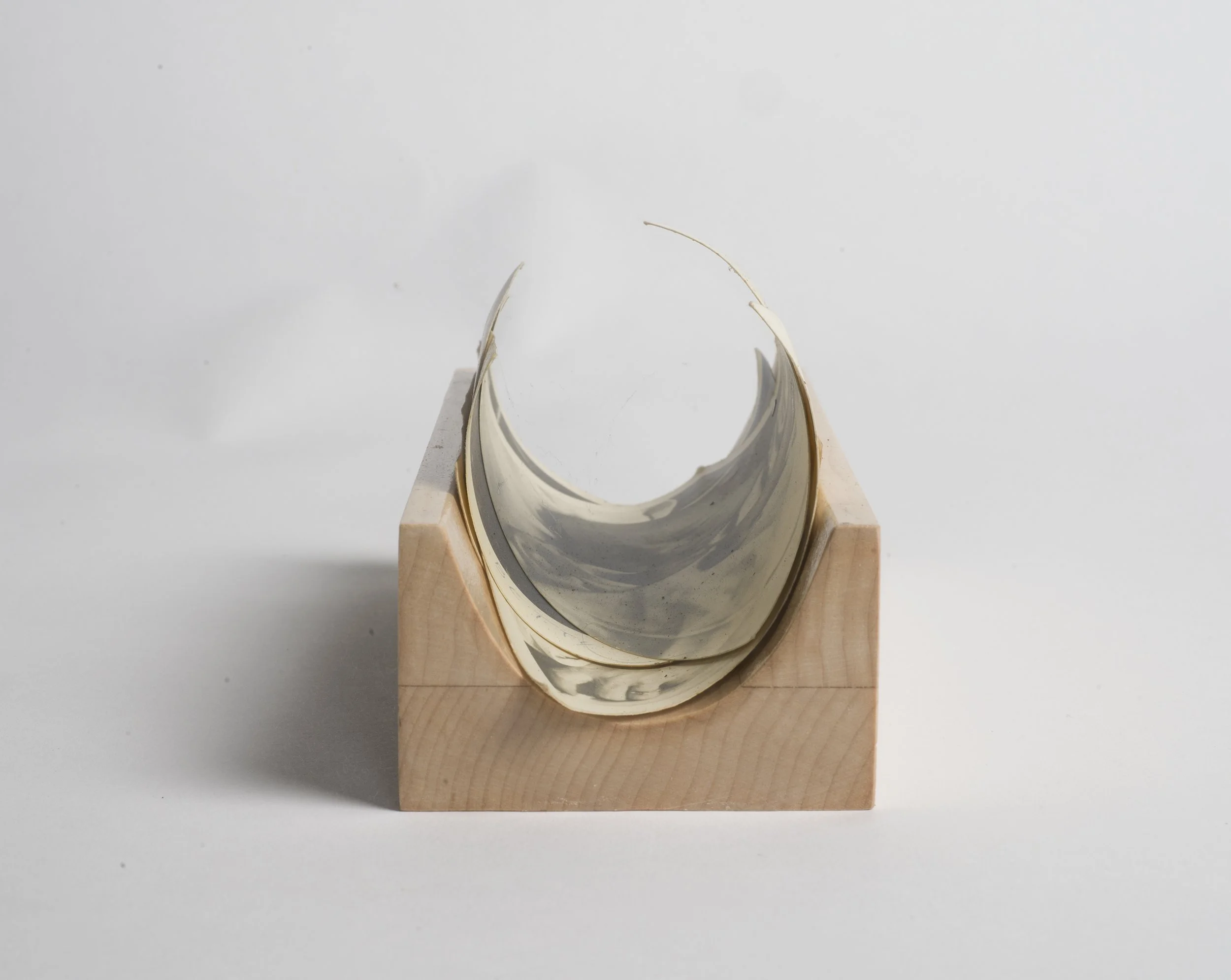 To Speak Another Language of Time is an ongoing body of assemblages made of found and original newspaper and snapshot photographs, 19th and 20th-century ephemera, lenses, and prisms enclosed or supported by wooden structures whose shape mimics forms of time. I am investigating time as material – what does it mean to flatten, unfold, curl, or bend time? How does the photograph symbolize and act upon time (i.e., to freeze, hold, abstract)? This work complicates the idea that time is linear and moves forward toward an ever more perfect future by underscoring cycles, repetition, and time's symbolic and psychological representations. Recent Supreme Court decisions and other political events, for example, have revealed that the future is not necessarily bound for progress.
